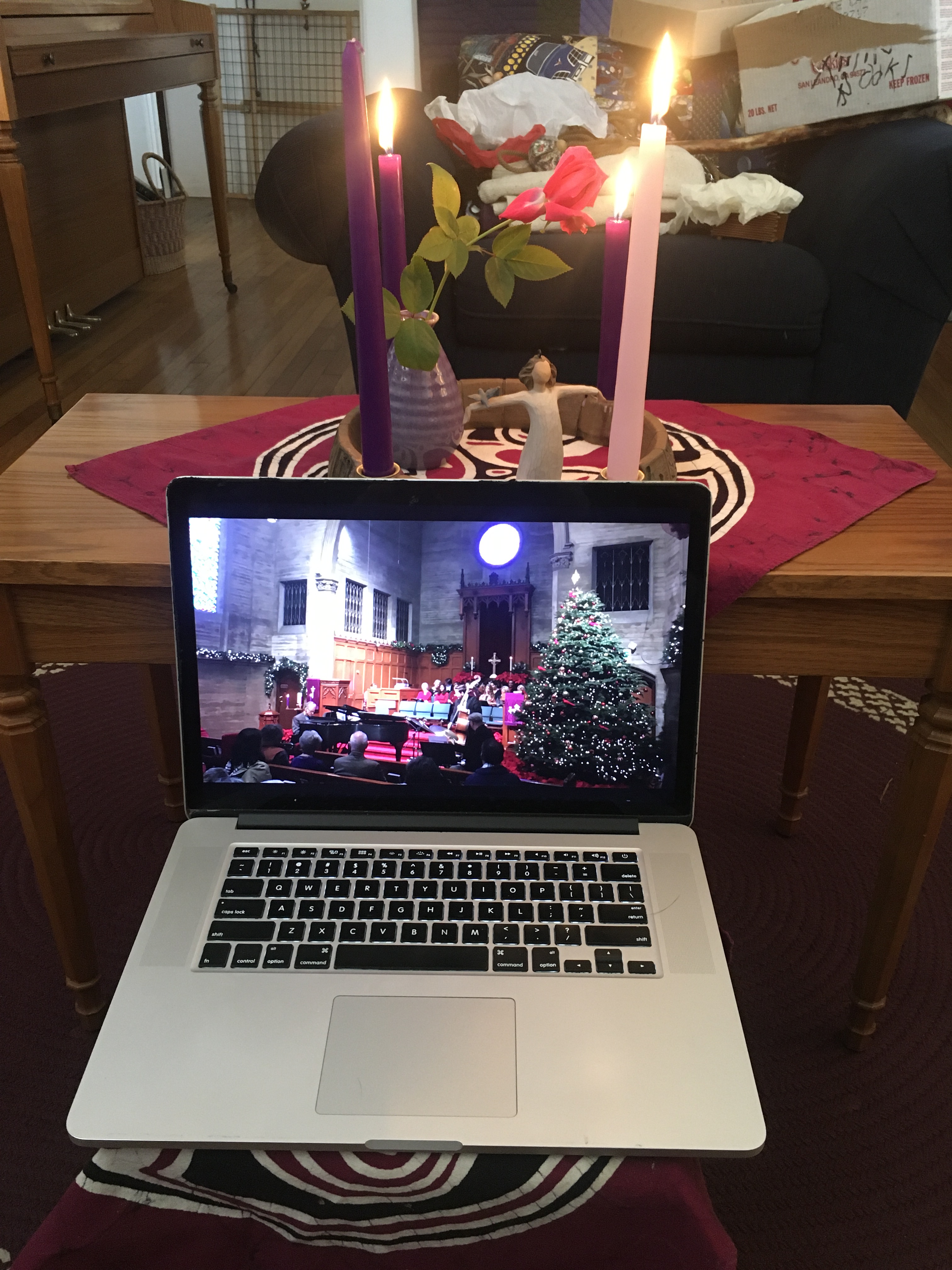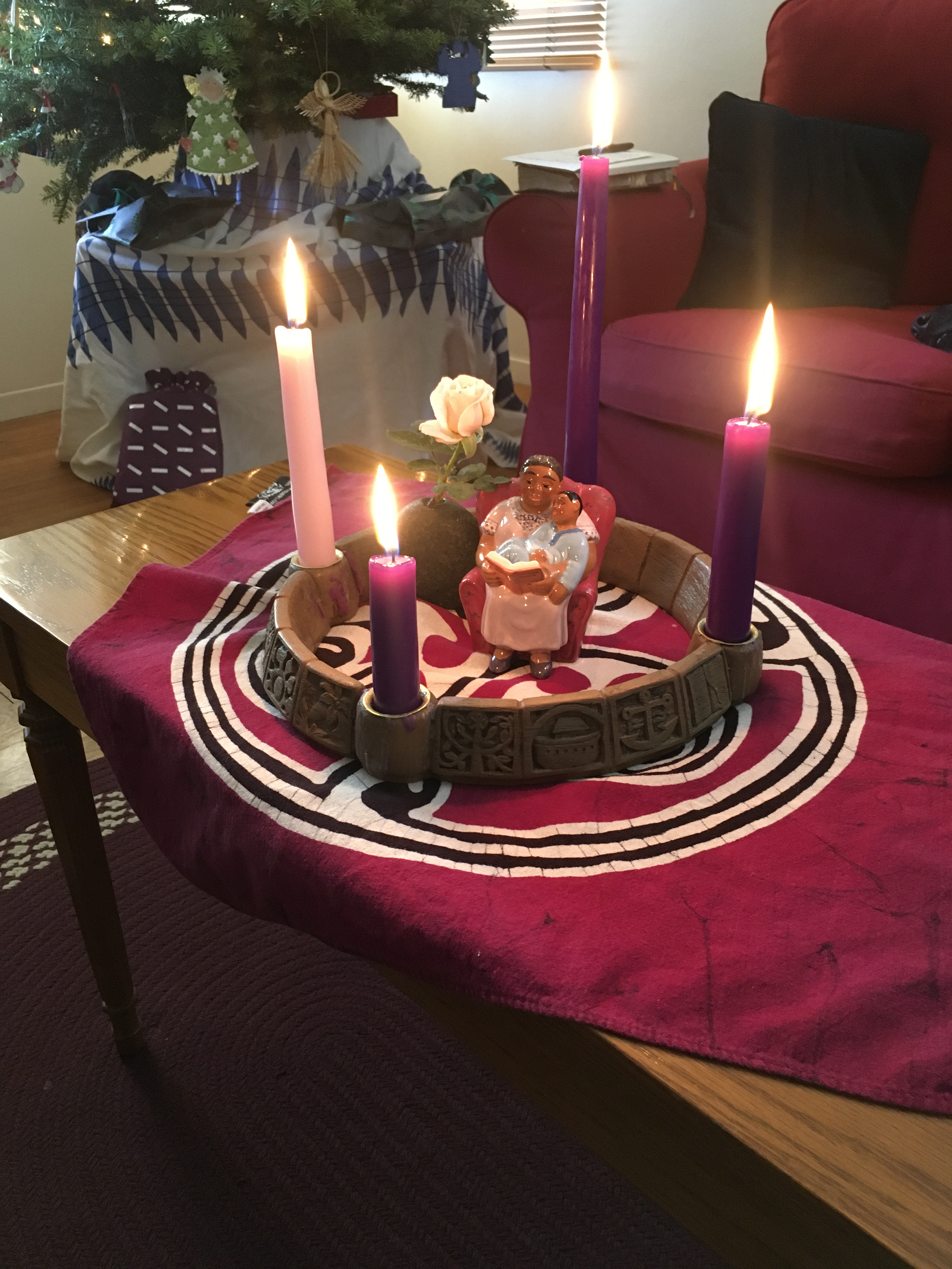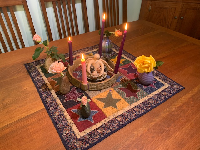 I am as unclear as everyone else about what a new year might bring, to me and to my beloved ones, to my community and my city, to the nation and the nations of the world. But in the lighting the Advent wreath I can see as much as I am able that Love is the only way to navigate the unknown–Love when I deliver coffee bread to the neighbor, Love when I make that phone or e-mail connection to the lonely or limited one, Love when I encounter the service people who come or to whom I go, Love to the agencies and organizations that are on the front lines of distributing resources for shelter and sustenance, Love to my dearest and nearest amid frustrations of changed plans, snafus and hoped denied. And I can reach down into that Love, because I am Beloved myself–by the Holy One in Jesus.