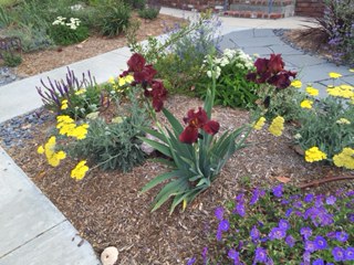 A group of us reflected this week on knowing God through creation and how it is leading us to a deeper and wider connection with everything that God has made. We did this in readiness for being open to what we are invited, even mandated, to do for the sake of the created world. We had planned to go on retreat to a nature preserve, but the weather (yes, even here in Southern California!) was cold, gloomy, and even though it wasn’t raining, the threats seems imminent. We huddled in my living room over hot drinks and coffeecake at first, shared times when the Holy One had seemed very present to us in nature–the sacred places, the “aha” moments, the times when out of doors, when the Spirit gobsmacked us with Mystery and Grace! Then we went into silence, with the choice to go outside, parkas, shawls and all, to encounter holiness! As we reassembled, the energy was palpable–the ornamental plum trees, the birds chirping, the bee, tracing his bee-like way through the blue flowers, and the spent camellia with a yellow leaf and abandoned twig making a collage for the focus of our contemplation and prayer–all had called us into love, wonder and praise for the Creator.